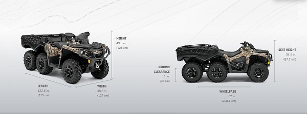 有别于一般全地形车采三轮或四轮设计,这辆由Can-Am打造的Outlander 6x6 XT,车身尺码为3150x1240x1260mm、轴距为2081mm,不只有着相当粗犷的身形,外观依照引擎动力提供三种涂装,包含入门的灰色,以及进阶可选的军事迷彩、黄色,再加上能提供6x6或4x6设定的六轮设计,以及大尺码的越野胎,就视觉上来看就已令人血脉喷张。