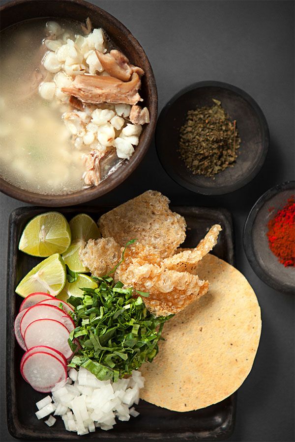 Pozole是一种叫做阿兹台克的汤品,主要用hominy(干玉米粒),猪肉和辣椒和大蒜调制。 玉米是阿兹台克人的一种神圣植物,他们只在特殊的场合煮这种汤。 现在Pozole汤中配菜丰富,通常有切碎的生菜或圆白菜,切片的红萝卜,鳄梨,牛至和莱姆角,是绝佳的聚会食品,也是最受欢迎的圣诞菜品之一。