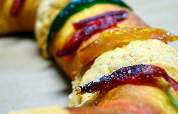 在墨西哥,和亲友们聚在一起享用Rosca de Reyes是节日的必备环节。Rosca de Reyes是墨西哥Kings Day的传统食物,它是一种花冠形状的甜面包,上面点缀有甜甜的水果糖,里面还藏有婴儿耶稣的小塑像。找到小塑像的幸运儿即有机会主持在2月2日举办的圣烛节(Día de la Candelaria)派对。